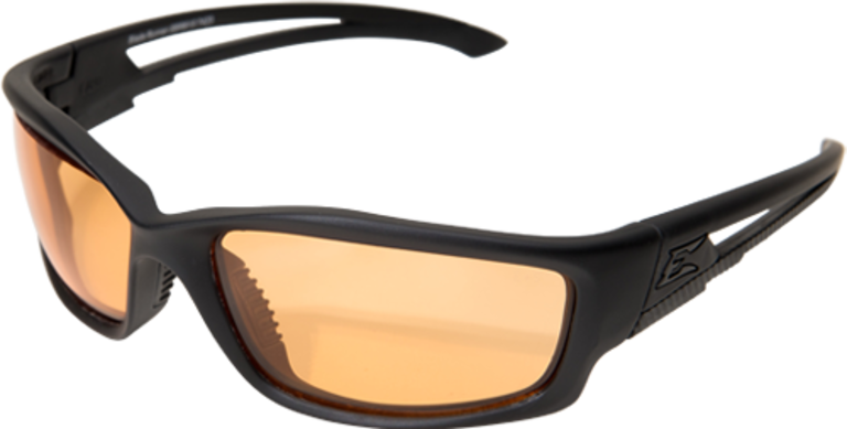 Edge Tactical Eyewear Blade Runner -lasit mattamustalla kehyksellä ja Tiger's Eye linssillä. Vapor Shield© anti-sumuteknologia on armeijoiden suosima sen suorituskyvyn vuoksi ja takaa täysin sumuttomat linssit äärimmäisissäkin olosuhteissa.