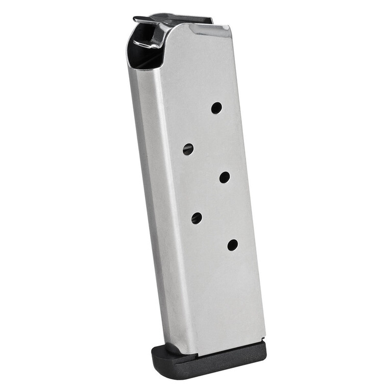 Springfield 1911 lipas, kal .45 ACP, 8 patruunaa. Slam padilla eli lippaanpohjaa vähän jatkettu.