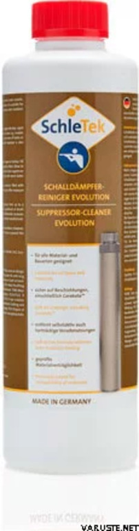 Suppressor Cleaner Evolution has been developed in collaboration with the world´s leading manufacturer of suppressors for the military and the authorities, Swiss B&T AG based in Thun. SchleTek Evolution is easy to use and rapid acting. It cleans all types of suppressors with its special self-active cleaning formula and removes even stubborn fouling. Laborious cleaning procedures are now a thing of the past.