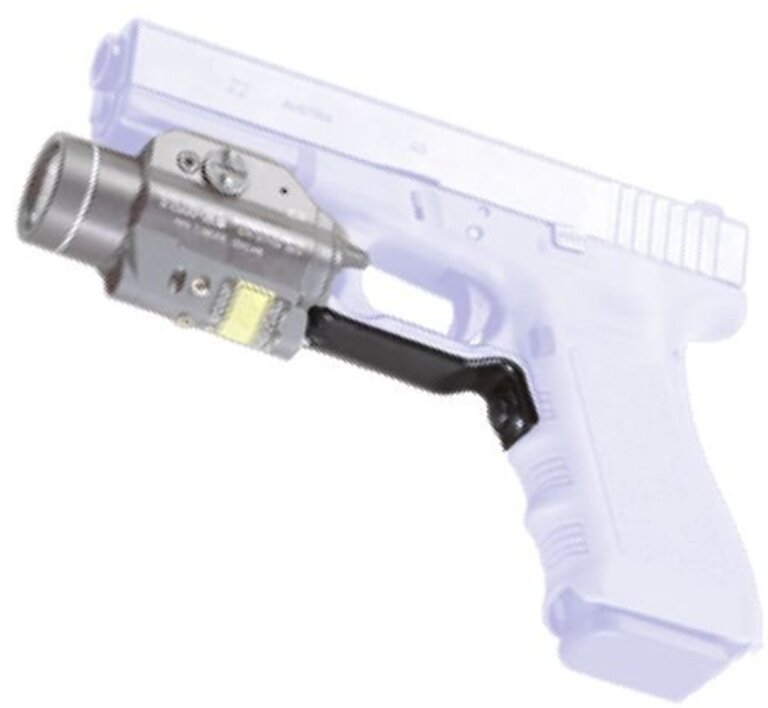 Valonkytkin liipasinkaaren alapuolelle kahvaan. Glock pistooliin.