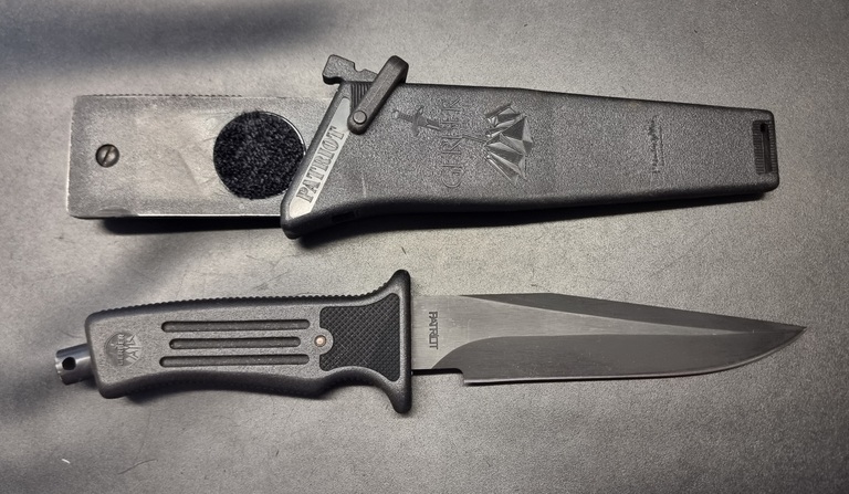 Siisti Gerber Patriot, Blackie Collinsin suunnittelema. Ei teroitettu, veitsi ollut yksityisellä omistuksessa mutta ei kunnon perusteella käytössä.