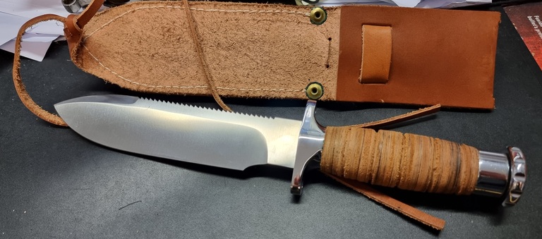 Hackmanin selviytymisveitsi suunniteltu jenkkien joukoille Vietnamiin. Valmistettu 1969/1970, koskematon, tuppi mukaan. Noin 5000 tehty joista todella harva tässä kunnossa, ei teroitettu eikä jälkiä missään. Harvinainen keräilykappale upeassa kunnossa!