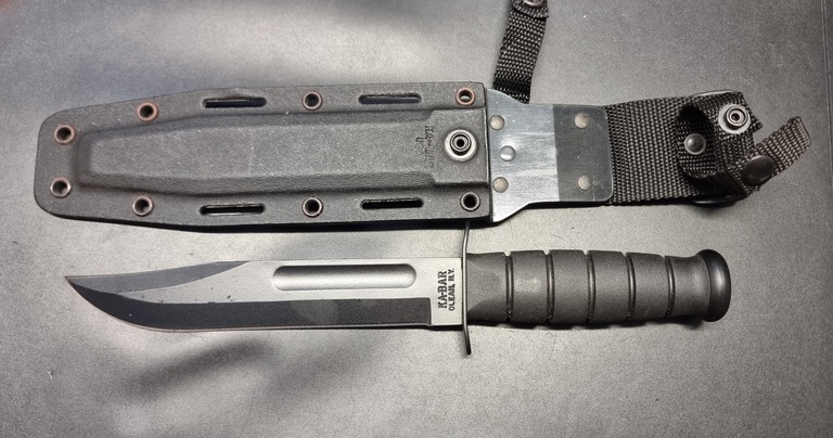 "Käytetty" Ka-Bar Long veitsi, ei teroitettu.