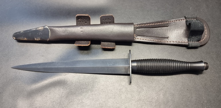 Siistissä kunnossa brittien taisteluveitsi. Todennäköisesti sodan jälkeistä tuotantoa. Ei teroitettu.