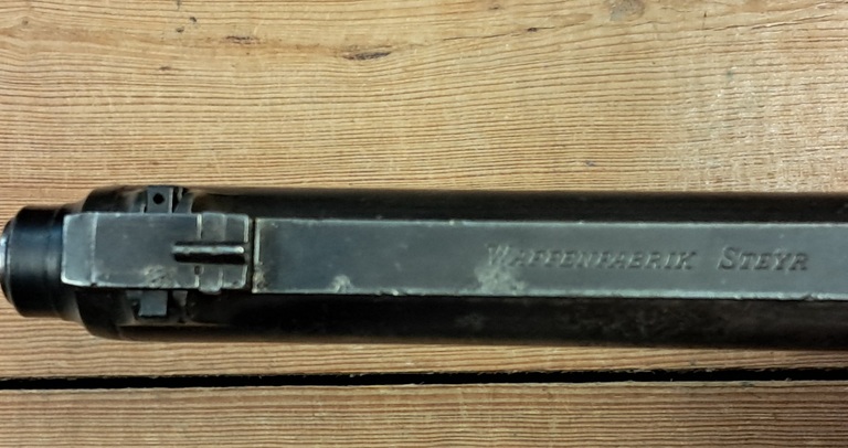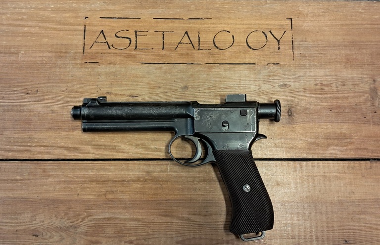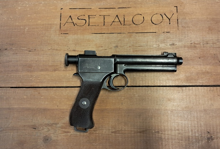 Suhteellisen harvinainen sotilaspistooli. Steyrin valmistama. Kunto kohtalainen.